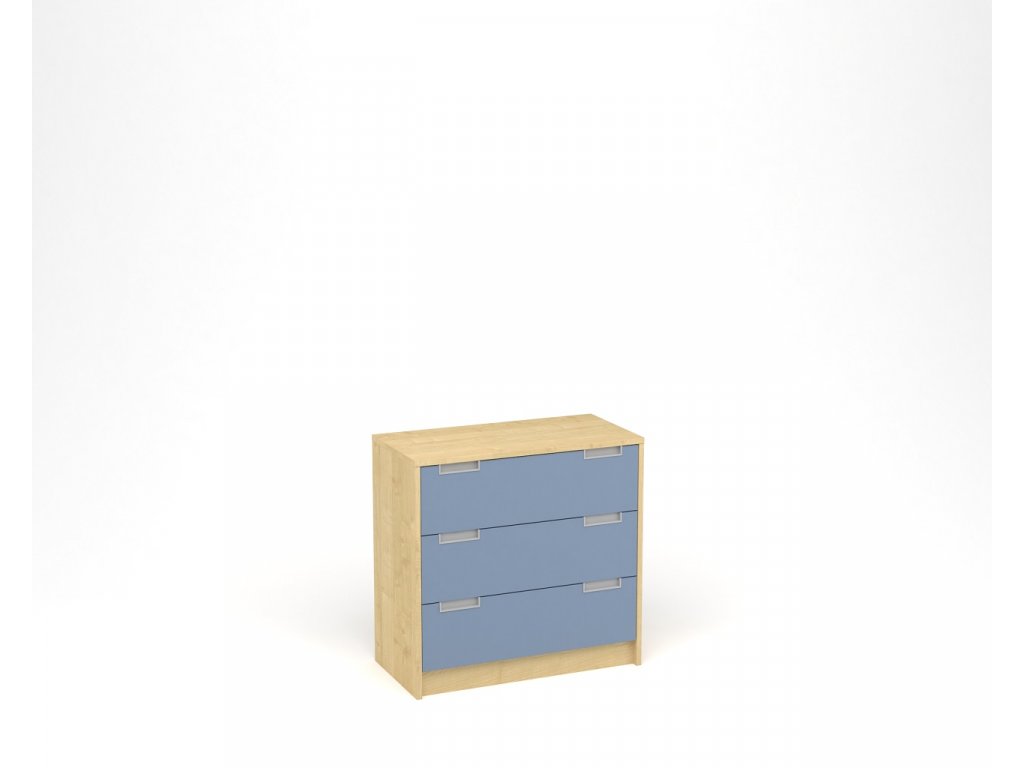Komoda do dětského pokoje, šířka komody je 80 cm, hloubka 45 cm a výška komody je 76 cm. K základní výbavě skříně patří 4 kluzáky s možností výškového nastavení v případě nerovné podlahy v dětském pokoji. Čela zásuvek jsou opatřena zápustnými úchytkami, které jsou pro děti bezpečnější než úchytky klasické.