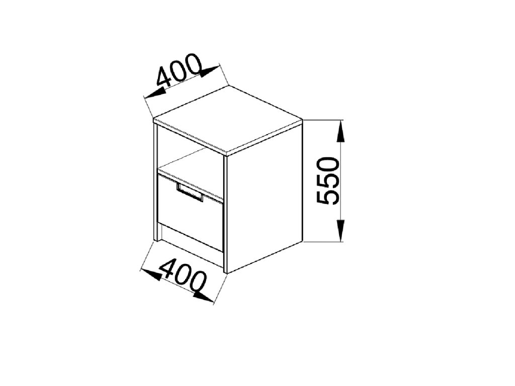Noční stolek do dětského pokoje, šířka stolku je 40 cm, hloubka je 40 cm a výška stolku 52 cm. K základní výbavě nočního stolku patří 4 kluzáky s možností výškového nastavení v případě nerovné podlahy v dětském pokoji. Čelo zásuvky je opatřeno zápustnou úchytkou, která je pro děti bezpečnější než úchytka klasická.