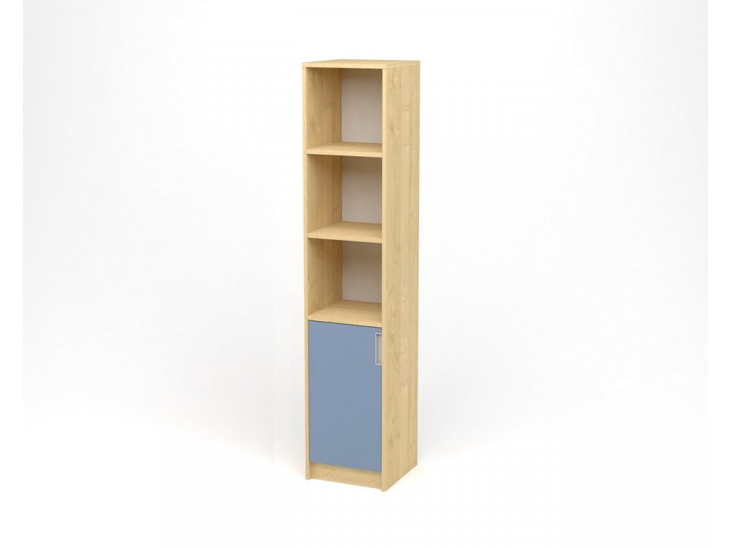 Policová skříň úzká, plná dvířka s nikou Javor Modrá, levá