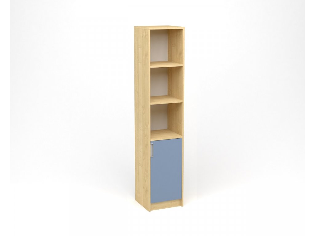 Policová skříň úzká, plná dvířka s nikou Javor Modrá, pravá